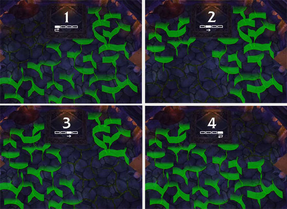 На скриншотах цифрами обозначены безопасные зоны. Рейд двигается по схеме 1-2-3-4-3-2-1 и так далее. Вход в левом верхнем углу картинки, а платформа с боссом – сверху в центре.